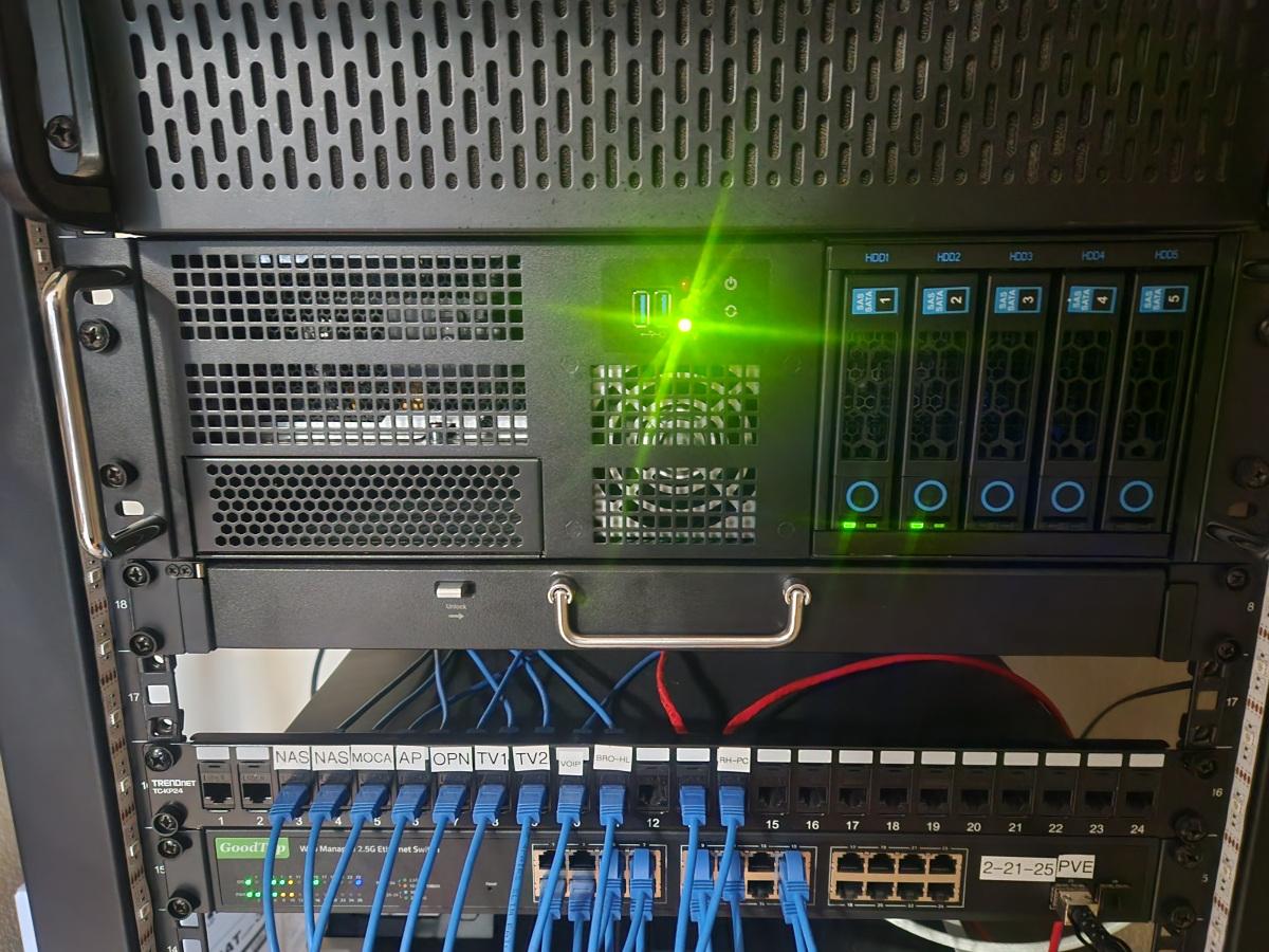 Part of the rebuild was replacing the Server case from a 2U to 3U. 4U was to bulky for my setup. 2U was too small and cramped the power cables and airflow was restrictive. The 3U case has better airflow, replaced the stock fans with premium silent fans, and could use a regular ATX board instead of MATX. Everything was replaced new and nothing was used from the last case. I will repurpose the old hardware for another project. Upgraded the 2.5gb network cards for 10gb card with a DAC cable to my rack switch. Also with the AMD 9700X, it has a built in GPU so I did not have to buy a graphics card for this server.